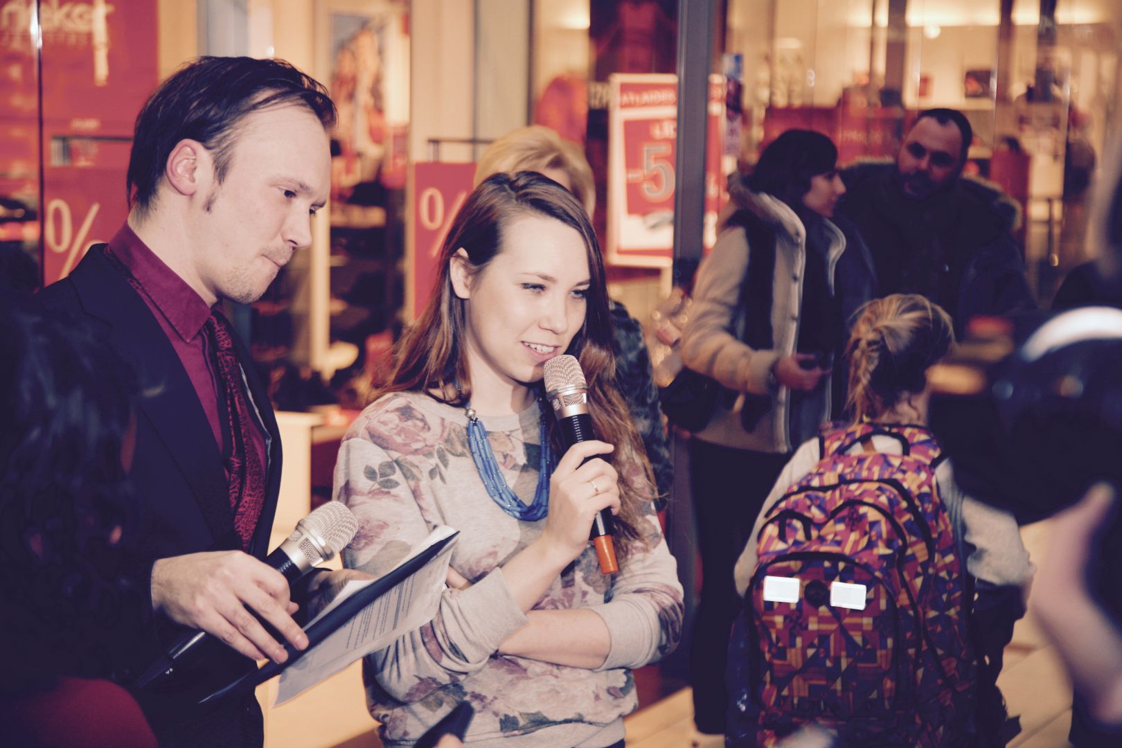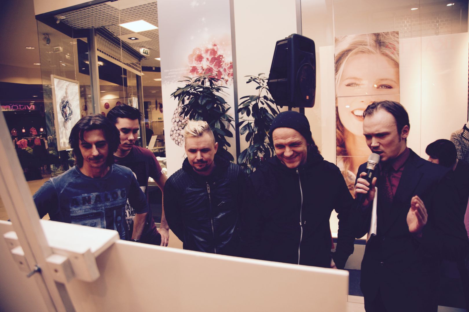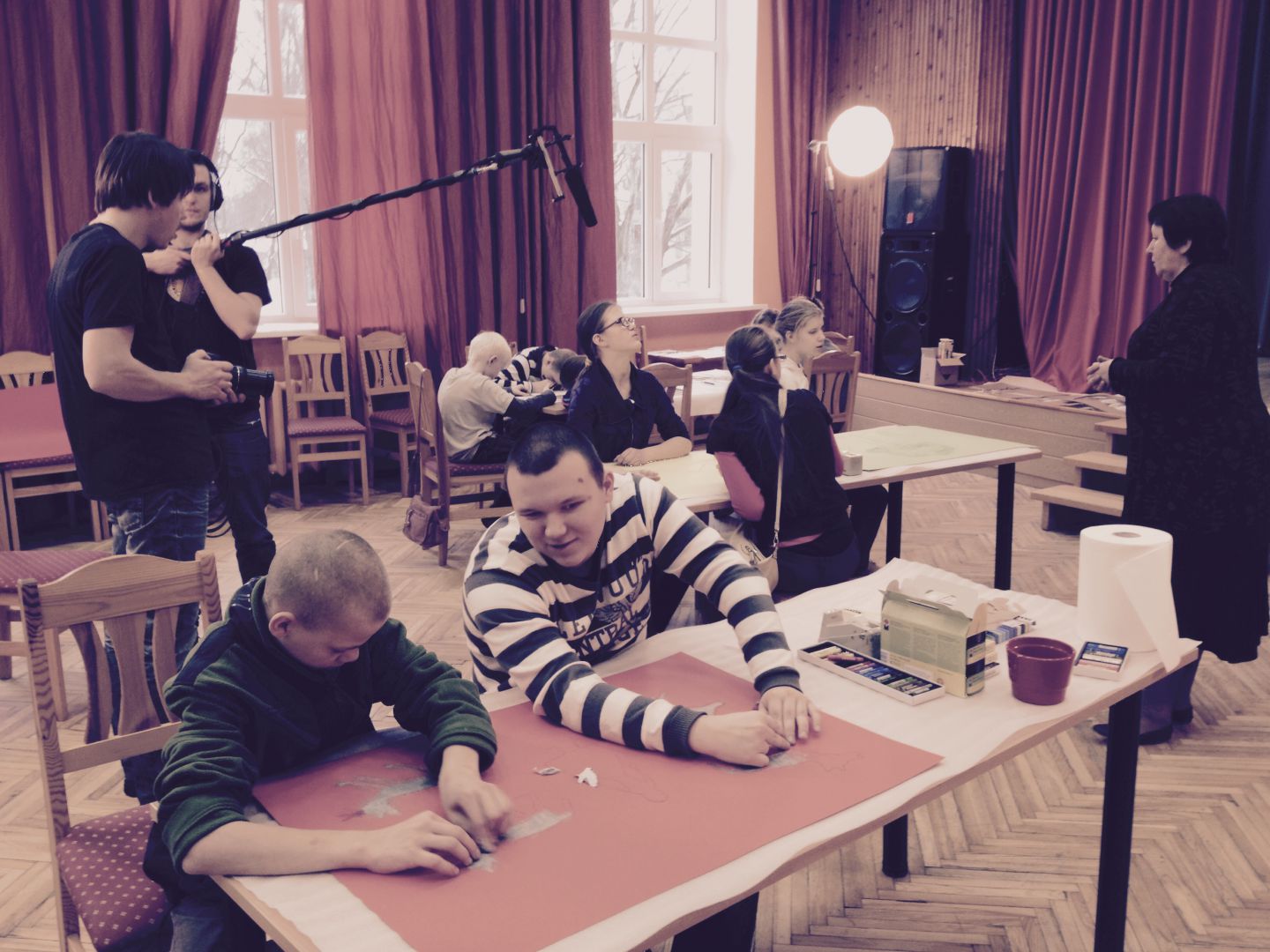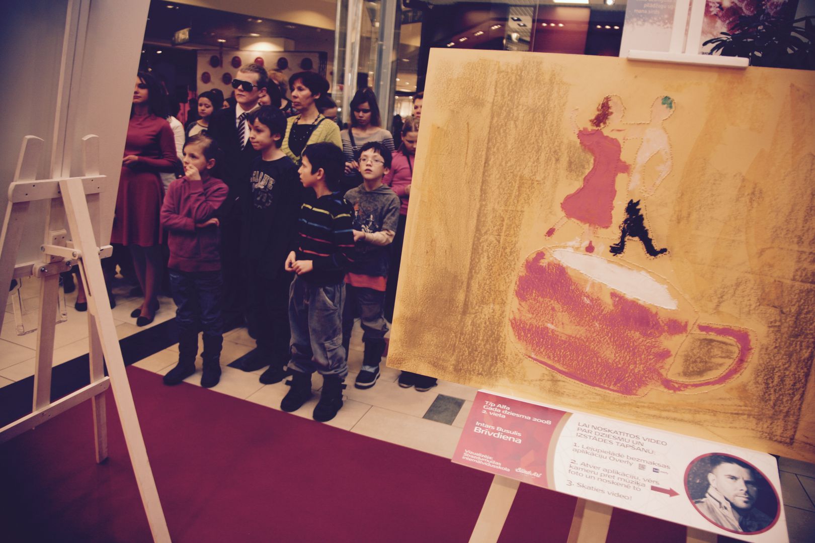 In collaboration with shopping center blind children created unique tactile painting exhibition. Inspiration for the artworks came from listening to songs of popular Latvian musicians. All of the songs have been previously voted song of the year by shopping center costumers, as a part of annual Latvian Music Record Awards. Interested parties had the opportunity to buy original works from exhibition at auction. Artworks were sold for 505 euros. Winners of Latvian Music Record Awards 2015 band contributed their money prize of 1500 euros to this BlindArt project. In total 2005 euros were gained and invested to improve visual arts classroom at Strazdumuiza Residential Secondary School and Training Center for the Blind and Visually Impaired.