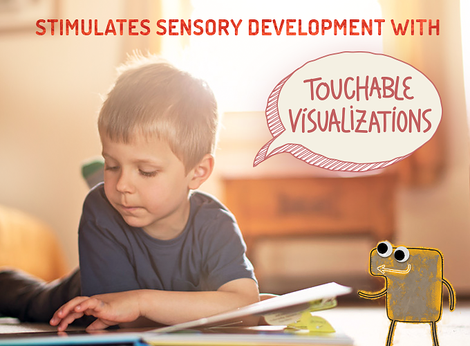 As a result, modern, interesting and educational literature for kids has been created. The illustrations of the books have been drawn by visually impaired and blind children from Strazdumuiza Residential Secondary School and Training Center for the Blind and Visually Impaired (Riga, Latvia). Illustrations were made by using a complex and unique tactile art technique - special stencils are used to make dots as coordination borders, then orientating by touch of the fingers, kids are able to color the shapes.