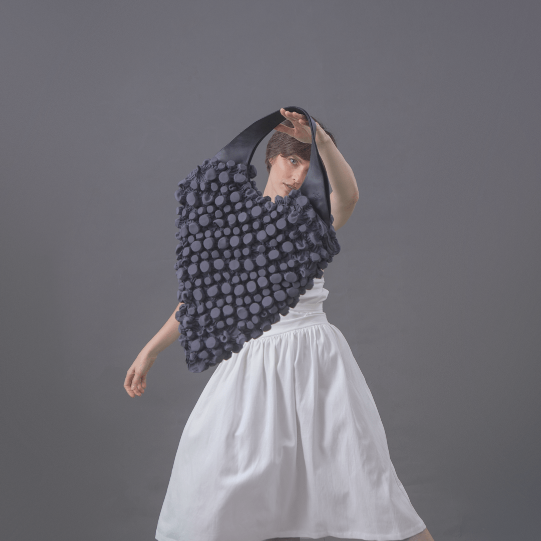 BurBur bag collection is made in partnership with the talented bag designer Renate Vitola. Each bag is a complex and meticulous masterpiece where the 3D fabric prepared by sightless individuals is juxtaposed with smooth and natural leather. These materials are unified in a terse silhouette. One can perceive the originality of the texture even with eyes closed, animating an array of associations about various natural surfaces while inducing futuristic sensations. Three conceptual values are particularly important – form, texture and functionality. In terms of design and development it is a major challenge, making BurBur bags the supreme examples of fashion whilst retaining the practical elements. Only high quality materials and furniture from Italy and Japan are used. It is possible to order a bag with a special NANO overlay which protects from humidity and dirt.